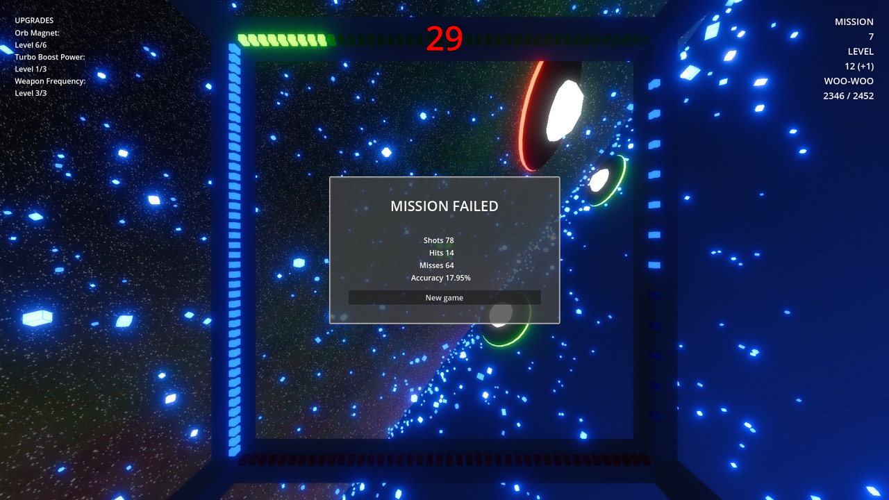 Once death became a factor, it was apparent that the shields were quite inadequate. In the previous demo, the basic non-upgraded shields reduced damage from the back and sides by 50%. This was arguably better than nothing, but still allowed far too many scenarios where your drone would be destroyed without you even seeing a projectile.